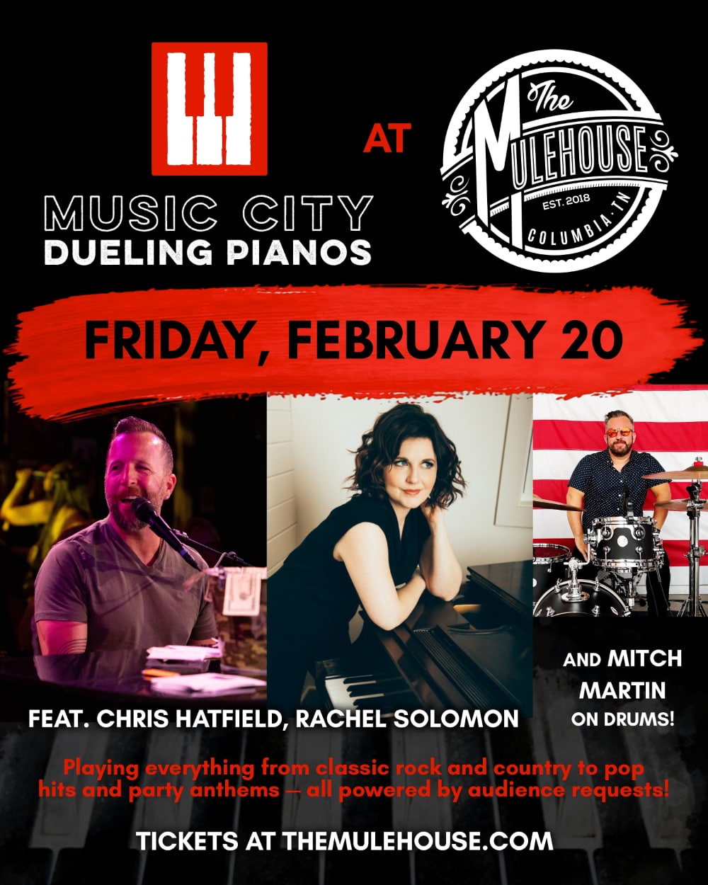Music City Dueling Pianos brings the ultimate interactive sing-along party — featuring world-class entertainers who turn your favorite songs into an unforgettable, request-driven experience. |